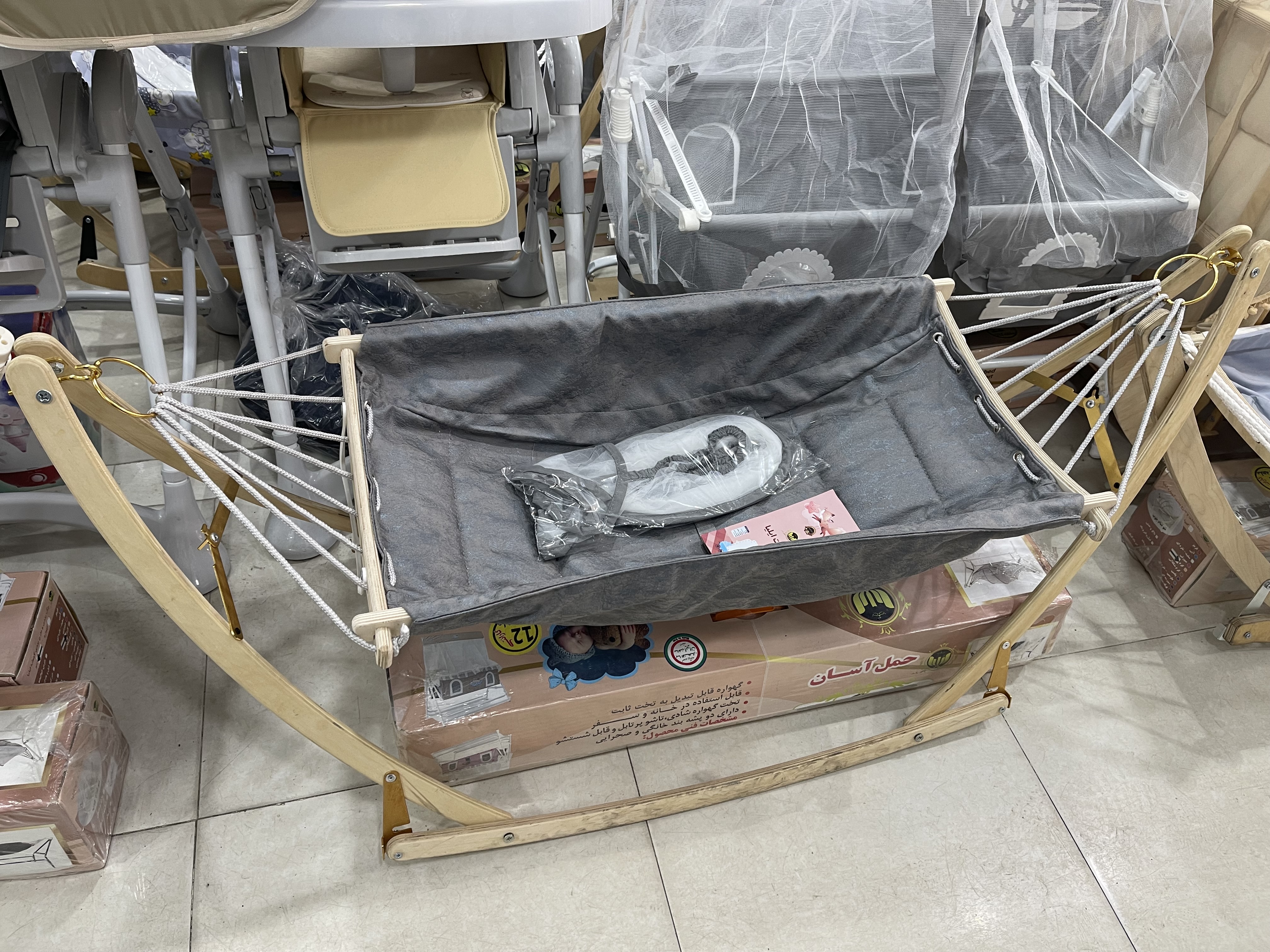 ننو بدنه فلزی وبدنه چوبی از هر دوموجود هست تکان خوردن استاندارد قفل بستن برای زمانی که نیاز به تکان خوردن ندارد رنگ کرم و طوسی